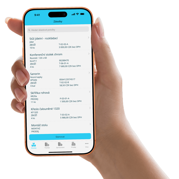 Mobilná aplikácia zabezpečí rýchlu inventúru, príjem, výdaj, tvorbu dokladov a evidenciu zásob bez chýb.